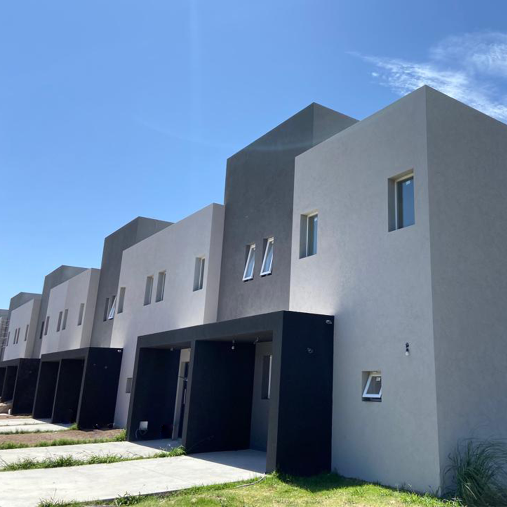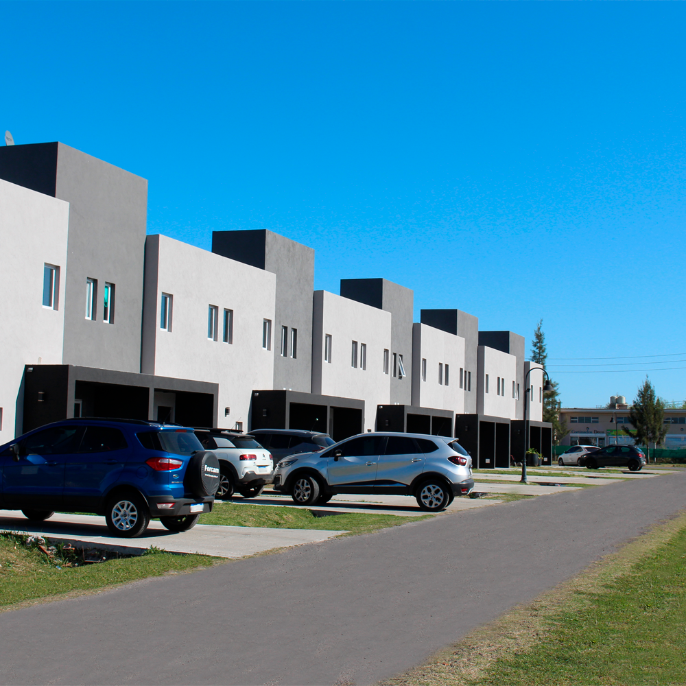 Condominios de 3 ambientes. Unidades construidas en dos plantas con una superficie total de 90m2. La planta baja cuenta con cocina, living-comedor, toilette de recepción, galería con parrilla, lavadero, parque y cochera propios. La planta alta consta de dos dormitorios con placard y baño completo.